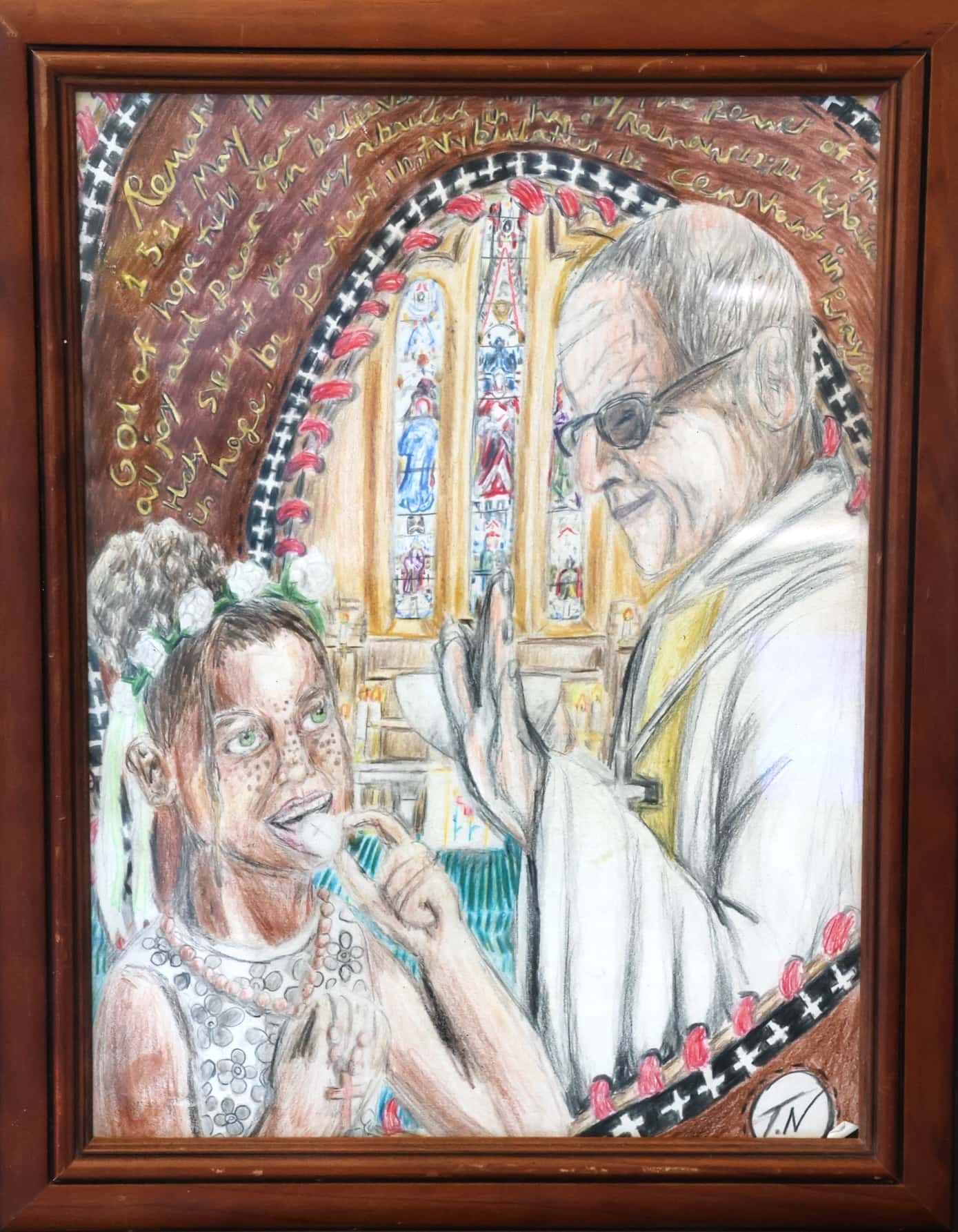 When I experience joy, I feel happiness like a little spark in me is about to explode. I feel free like I’m floating on happiness. On my Confirmation Day I felt filled with the hope and joy of God. I felt nervous at first, but after our blessing I felt like a dove. The ceremony made me feel closer to my friends, and to the Church. When the service was over everyone was happy and taking photos. I felt famous.